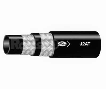 La Manguera Hidráulica J2AT está diseñada para aplicaciones de extrema presión en sistemas hidráulicos que utilizan fluidos a base de petróleo, agua o aceites lubricantes. Su tubo interior de caucho sintético negro (nitrilo) ofrece excelente resistencia al aceite, mientras que su refuerzo de dos trenzas de alambre de acero de alta tensión garantiza una gran durabilidad y soporte bajo presiones elevadas. La cubierta de caucho sintético negro protege contra la abrasión, el medio ambiente y la exposición a aceites. Operativa en un rango de temperatura entre -40°C y +49°C, soporta una presión de trabajo de hasta 10,000 PSI, adaptándose a las más altas exigencias industriales.